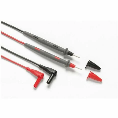 FLUKE Ein Paar Silicon-Messleitungen (rot/schwarz) mit rechtwinkligen Anschluss-Steckern und festen Mess-spitzen (1,5 m lang). Besonders für kleine messspannungen (uV) geeignet, CAT IV 600 V, CAT III 1000 V, 10 A geeignet, UL-gelistet