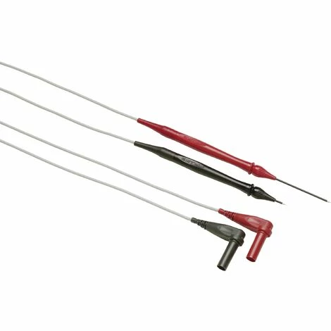 • Ein Paar Messleitungen (rot, schwarz) mit scharfen Spitzen, die zwischen 0 und 76 mm auf die gewünschte Länge eingestellt werden können.